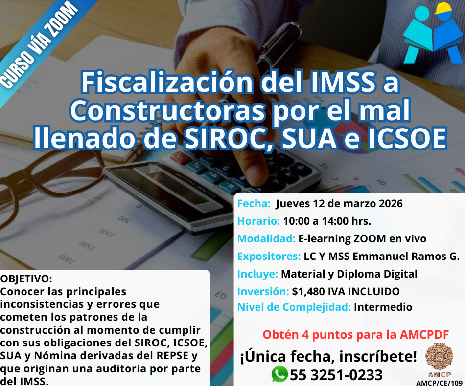 Curso Fiscalización del IMSS a Constructoras por el mal llenado de SIROC, SUA e ICSOE.