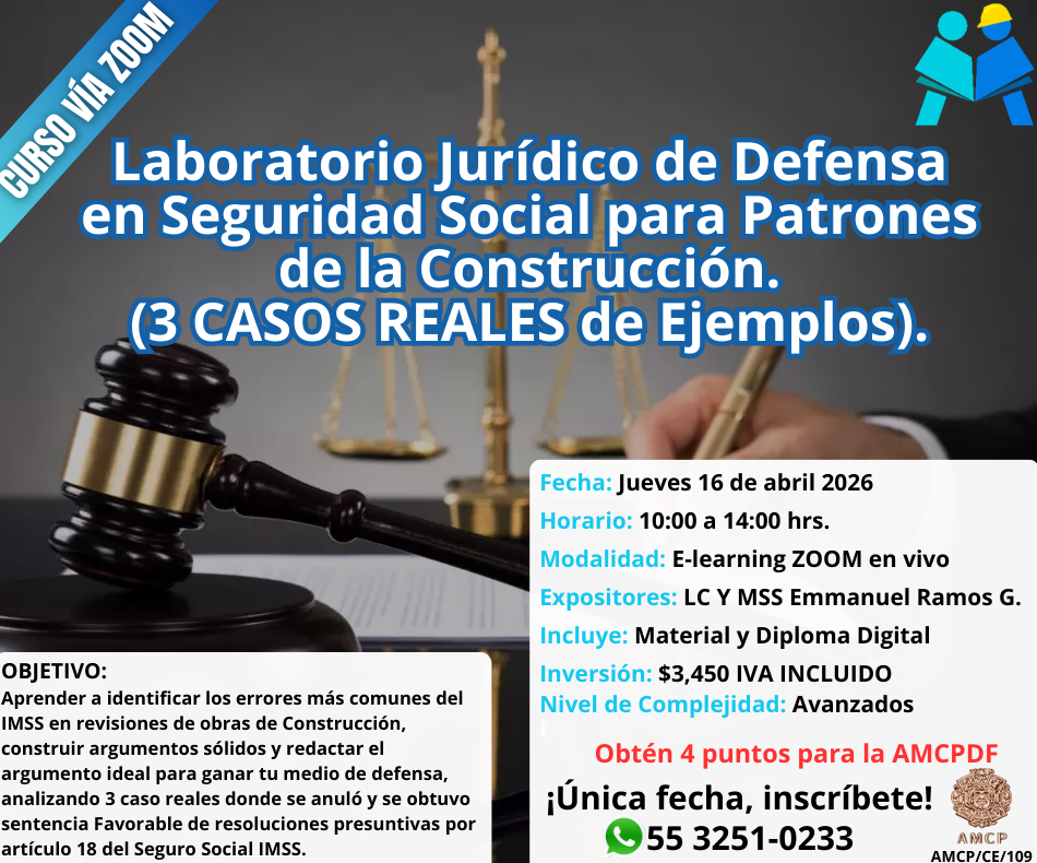 Curso ¿Cómo Disminuir una Estimación de Cuotas en una Obra, determinada por el IMSS 2025Curso ¿Cómo Disminuir una Estimación de Cuotas en una Obra, determinada por el IMSS 2025