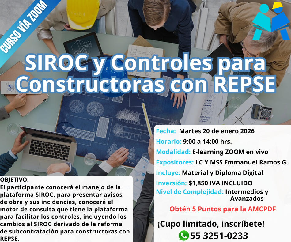OBJETIVO: Los participantes conocerán el manejo en materia de la Ley anti lavado, los aspectos fiscales e implicaciones REPSE, en las empresas Constructoras para 2026, así como la implementación para una contabilidad por centros de costos por obra, para evitar multas y actos de fiscalización.